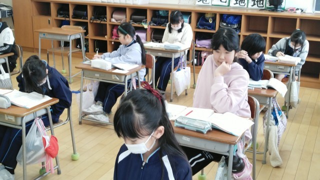 4年1組の3時間目は、算数科の学習でした。かわりかたを表にかいて考えていました。