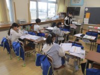 5年生の3時間目は、家庭科の学習でした。ミシン縫いの入れ物の特徴について考えていました。