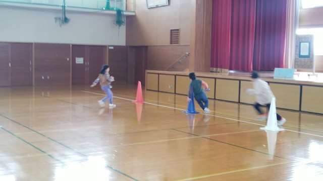 今日のぐんぐんタイムは、3年生と6年生の交流でした。体育館で折り返しリレーを楽しんでいました。