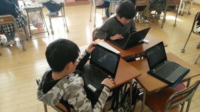 4年1組の5時間目は、社会科の学習でした。県内の調べたい市町村について調べていました。