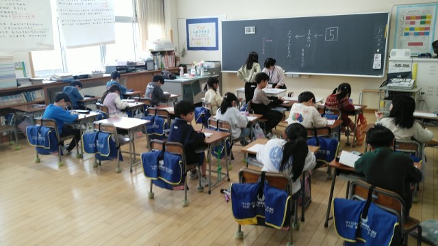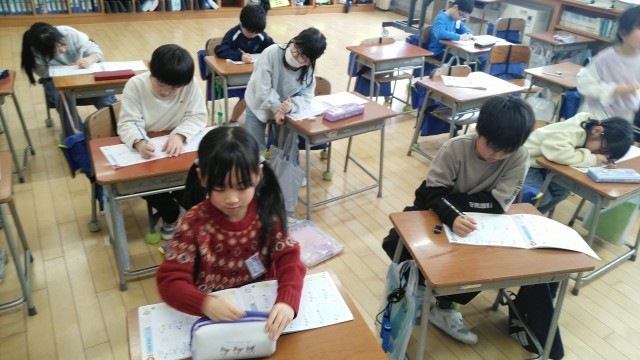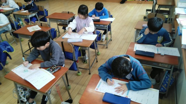 1年生の5時間目は、国語科の学習でした。漢字ドリルを使って漢字の練習をしていました。
