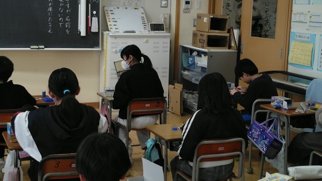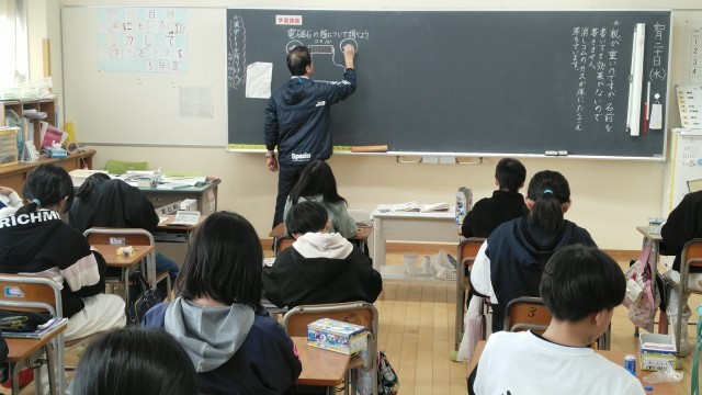5年生の5時間目は、理科の学習でした。電磁石の実験セットを使って磁石の極について話し合っていました。