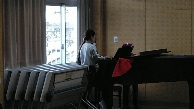 6年生は、5時間目に音楽室で喜びの言葉の練習をしていました。ピアノのBGMがすてきです。