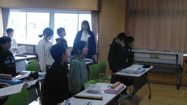 5年生の5時間目は、音楽室で音楽科の学習をしていました。卒業式で歌う「大空がむかえる朝」を生伴奏で練習していました。