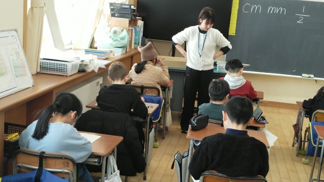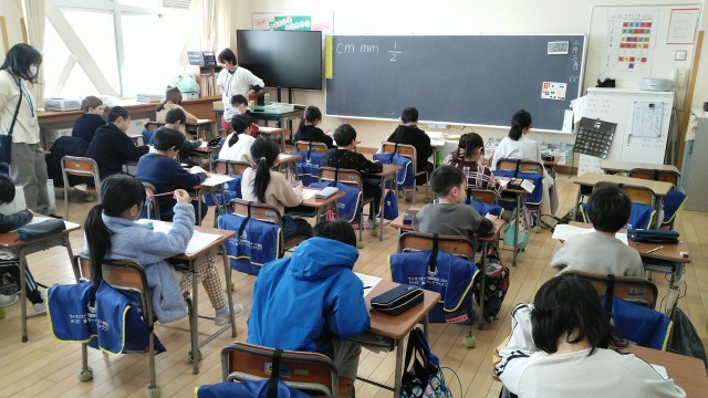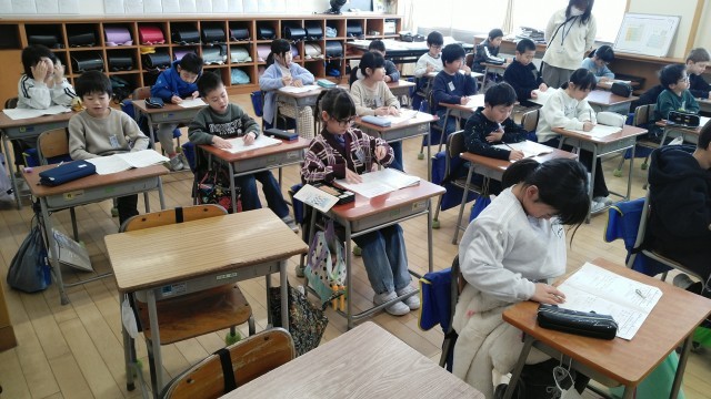2年生の1時間目は、算数科の学習でした。プリントの答え合わせをしていました。