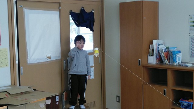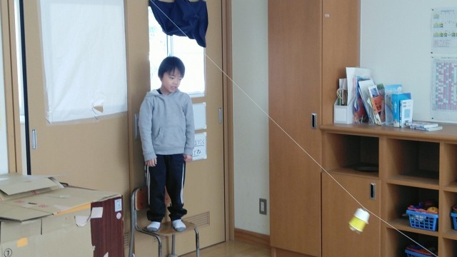 つばめ野級2組の1年生の3時間目は、図画工作科の学習でした。するするビューンを見せてくれました。