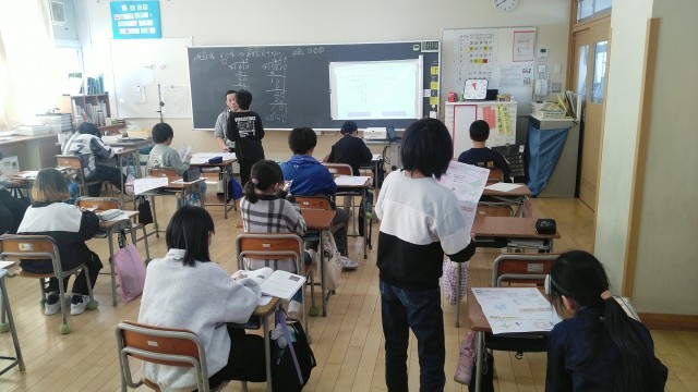 4年1組の5時間目は、算数科の学習でした。テスト直しをしていました。