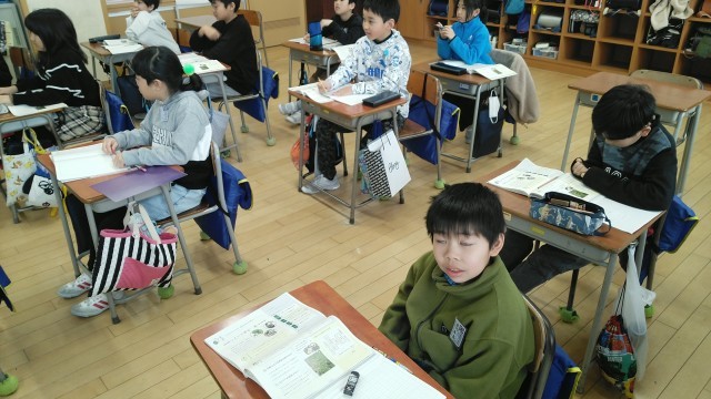 3年生の4時間目は、国語科の学習でした。図を使って文を考えていました。