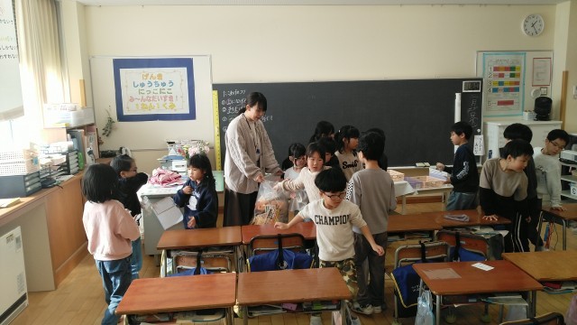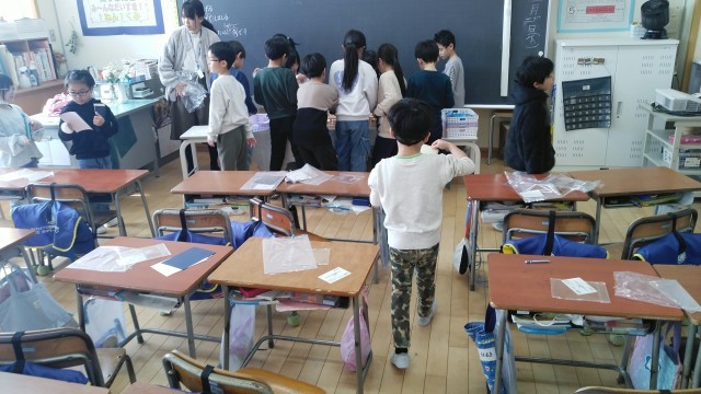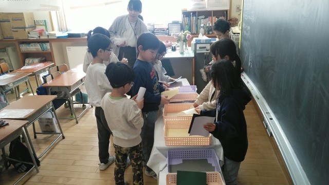 紙版画の材料をわけてから、グラウンドでぐにゃぐにゃだこをあげに行く予定です。