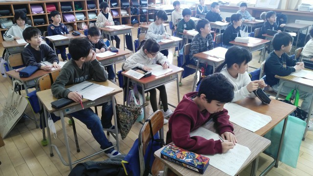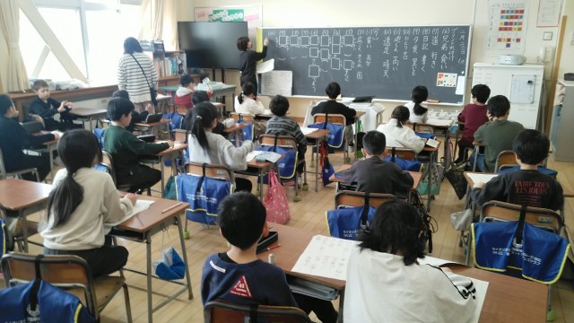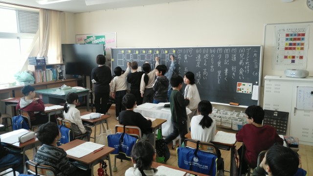 2年生の2時間目は、国語科の学習でした。先生の出した漢字の問題を解いていました。
