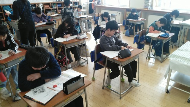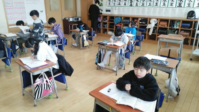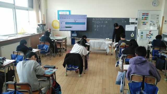 3年生の2時間目は、算数科の学習でした。もとにする鉛筆の長さの3倍がいすの長さ(36センチ)だから…。考えていました。