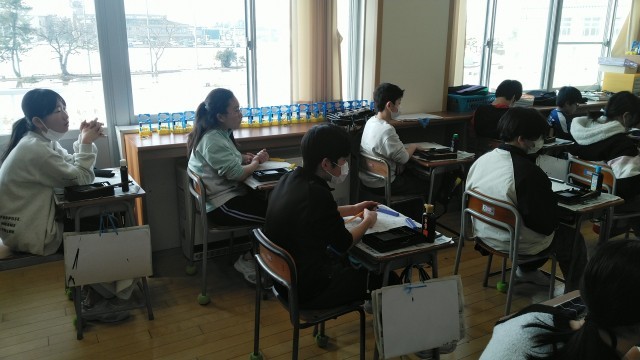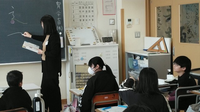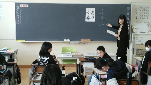 5年生の2時間目は、書写の学習でした。「近づく春」という文字を書いていました。