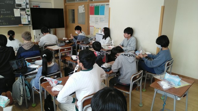 6年生の3時間目は、図画工作科の学習でした。「未来の自分」をつくっていました。人間らしく見えるように工夫していました。