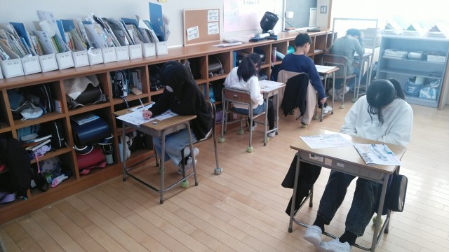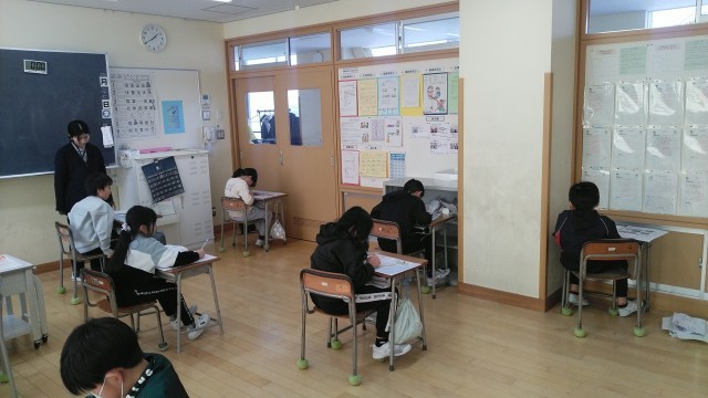 4年2組の5時間目は、社会科の学習でした。テストをしていました。