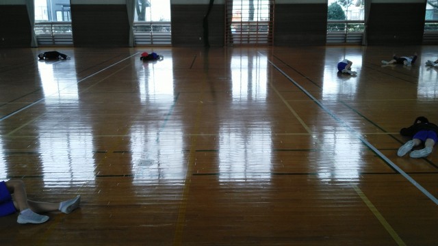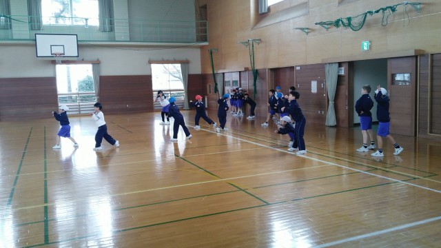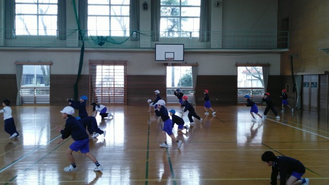 2年生の5時間目は、体育科の学習でした。走っている途中で先生に言われた動物になって止まるというレースをしていました。「…猫。…犬。…馬。…寝る。…。」
