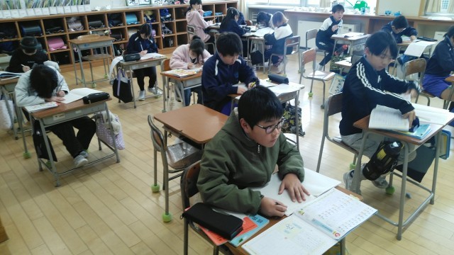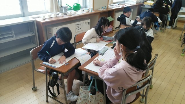 4年1組の1時間目は、国語科の学習でした。漢字ドリルを使って漢字の練習をしていました。