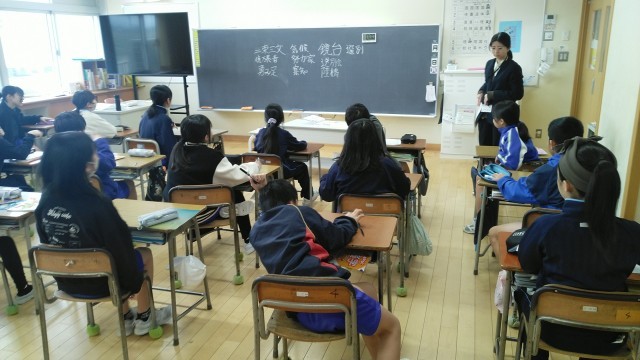4年2組の1時間目は、国語科の学習でした。先生が黒板に書いたいくつかの熟語を覚えていました。