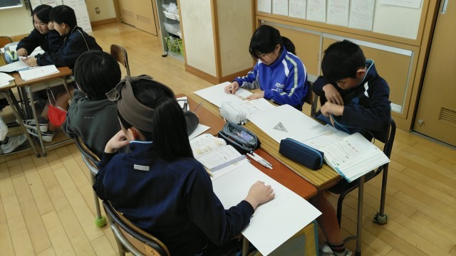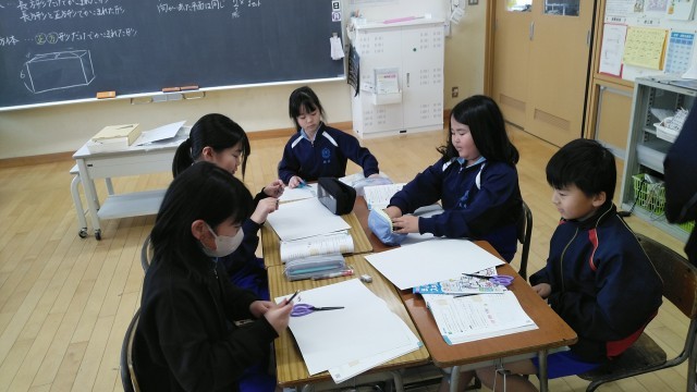 4年2組の3時間目は、算数科の学習でした。一人一人が直方体をつくろうとしているところでした。