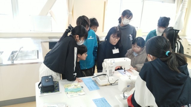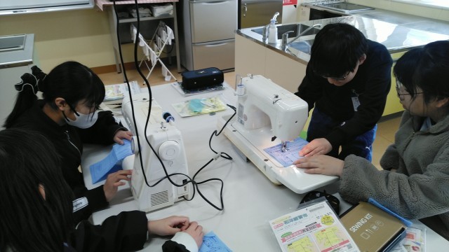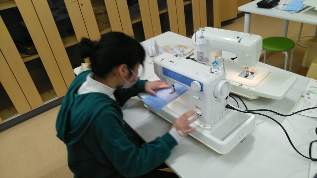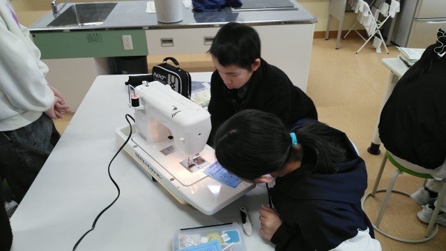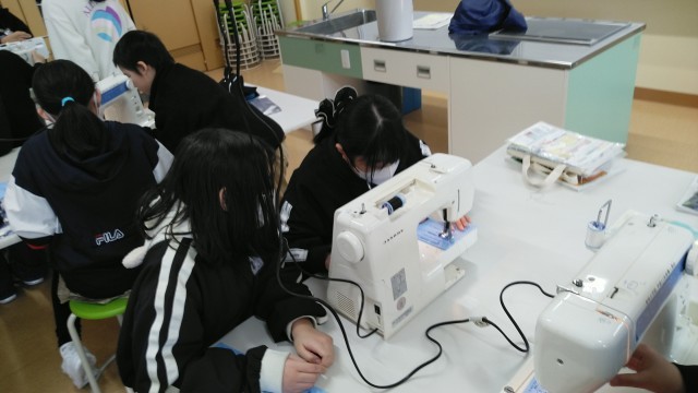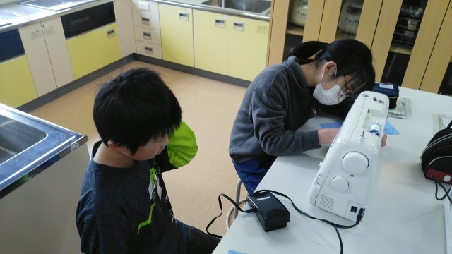 5年生の3時間目は、家庭科の学習でした。ミシンを使って布を縫っていました。