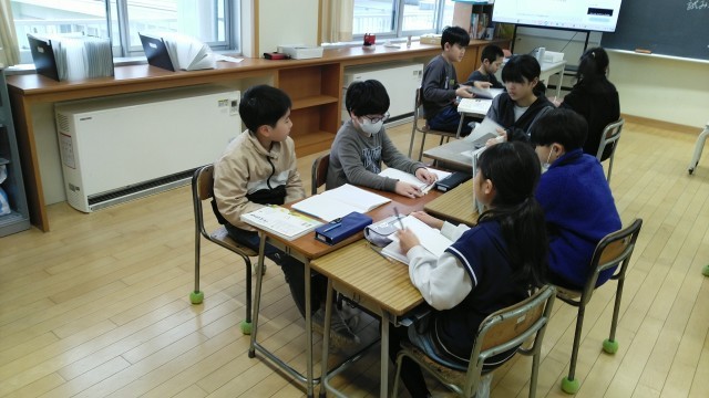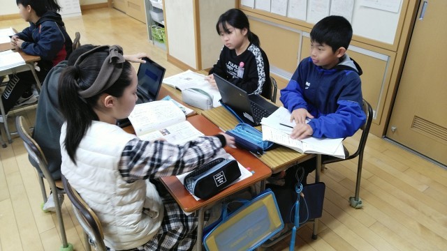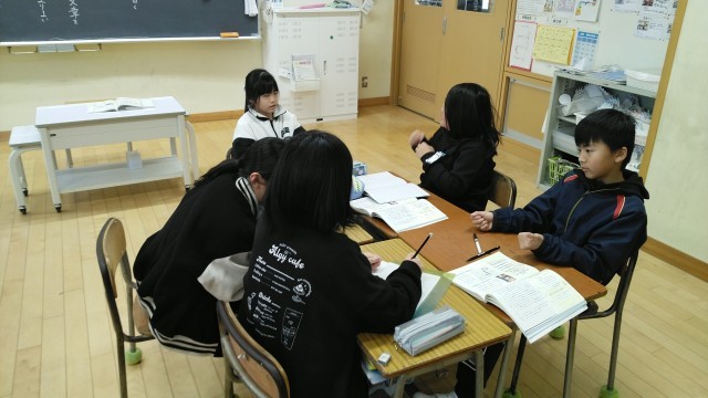 4年2組の1時間目は、国語科の学習でした。自分たちが調査したアンケート結果をもとに、発表するための資料をつくろうとしていました。