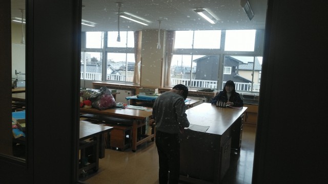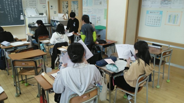 5年生の5時間目は、音楽科の学習でした。「威風堂々」のリコーダーのテストをしていました。待っている間や終わった人は、卒業掲示をつくっていました。