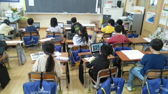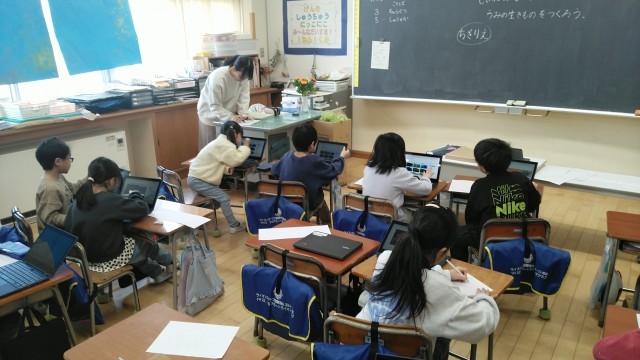 1年生の1時間目は、図画工作科の学習でした。「うみのなかまをつくろう」ということで、うみのなかまをかいていました。