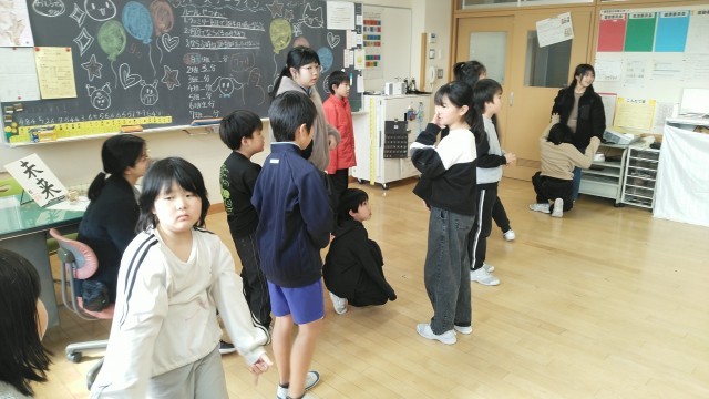 6年生で行われていた「バースデーライン」の様子です。誕生日順に並べているか答え合わせをしていました。