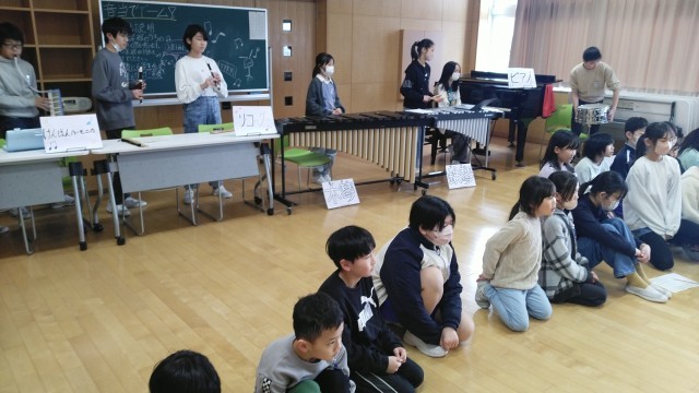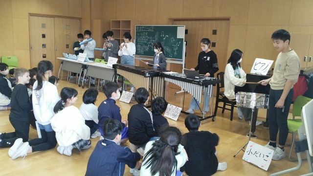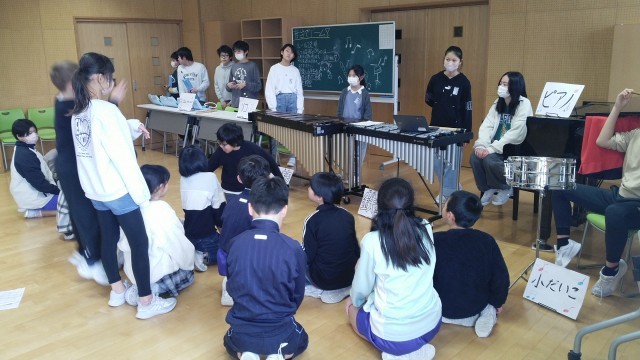 音楽室で行われていた「音当てゲーム」の様子です。どの楽器の音が出たのかを当てていました。最後にケセラセラの演奏も聴かせてもらえました。
