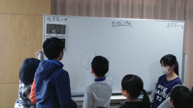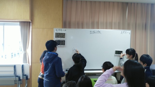 音楽室で行われていた「イラスト当てゲーム」の様子です。素早くイラストが描けてすごいです。