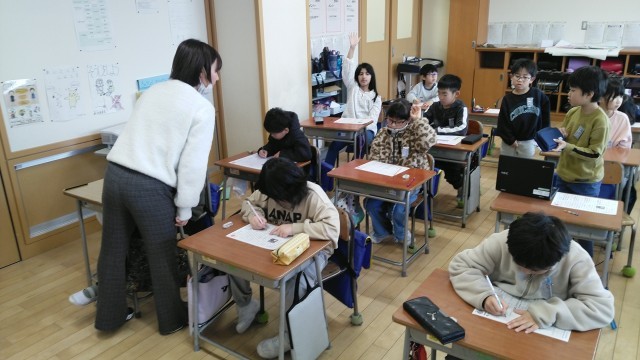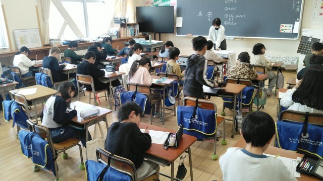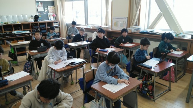 2年生の1時間目は、国語科の学習でした。プリントをしていました。
