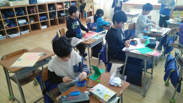 3年生の5時間目は、理科の学習でした。あかりとじしゃくのおもちゃづくりに取り組んでいました。
