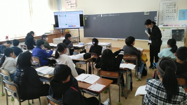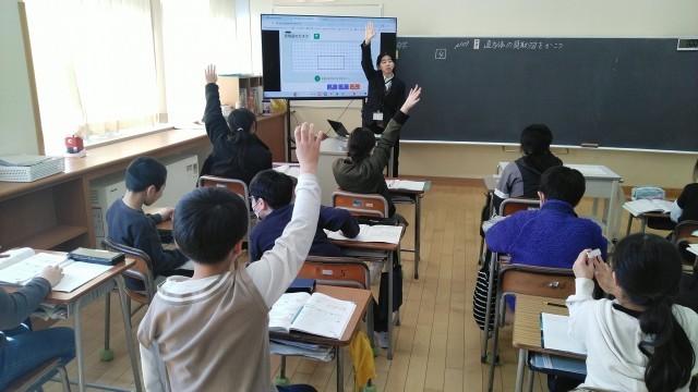 4年2組の5時間目は、算数科の学習でした。直方体の見取図について考えていました。