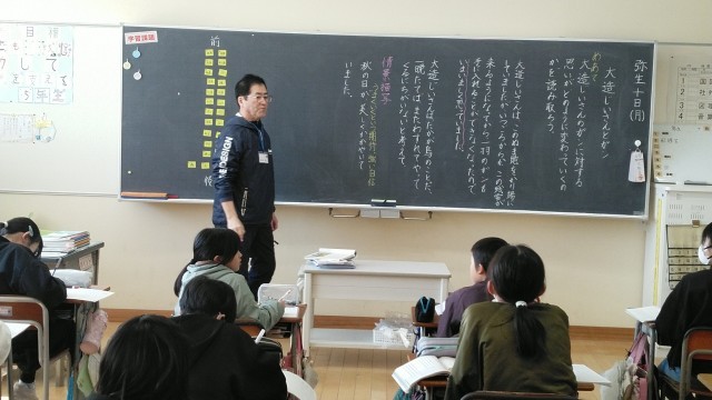 5年生の5時間目は、国語科の学習でした。「大造じいさんとガン」のお話の段落ごとの情景描写について考えていました。