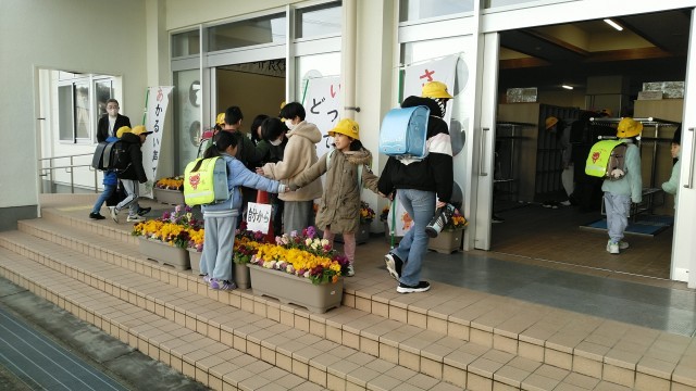 3月12日(水) 今朝の児童玄関
