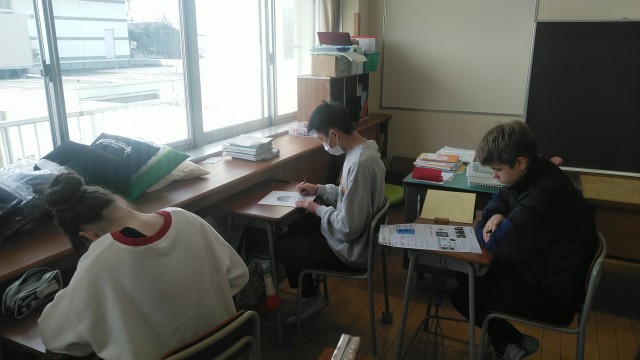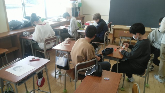 6年生は、1時間目に「超リアルな自画像をつくってみよう」の作品の加筆をしていました。みんなとてもそっくりな作品になっていました。
