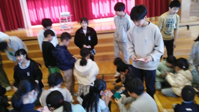6年生が集会を開いてくれました。各委員会からの問題を解いたり、ファミリー班の6年生さんから手紙をもらったりしました。みんなとても喜んでいました。