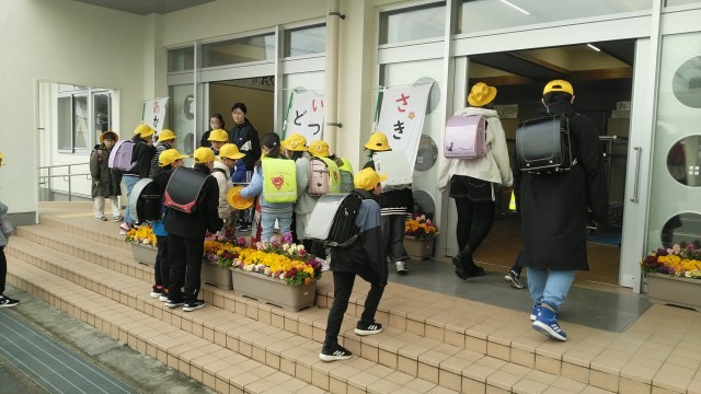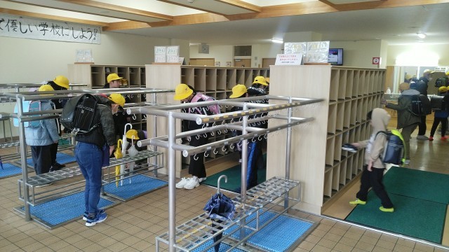 今朝の児童玄関の様子です。今日も元気に子供たちが登校してきました。
