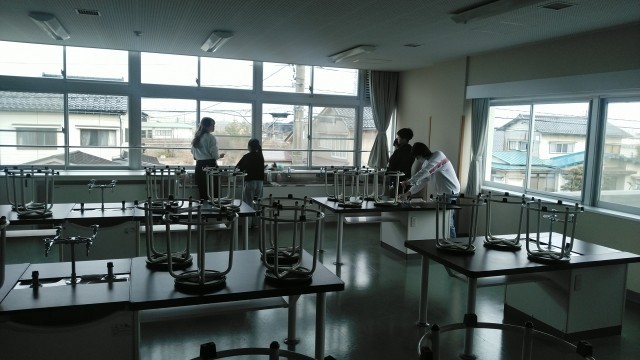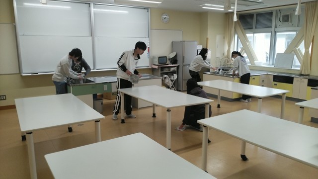 何人かで協力して、理科室や家庭科室をきれいにしている人たちもいました。