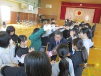 今朝の児童玄関の様子です。雨の日の朝です。初めてカッパを来て登校してきた1年生のお手伝いをする上級生がたくさんいました。ありがとうございます。
