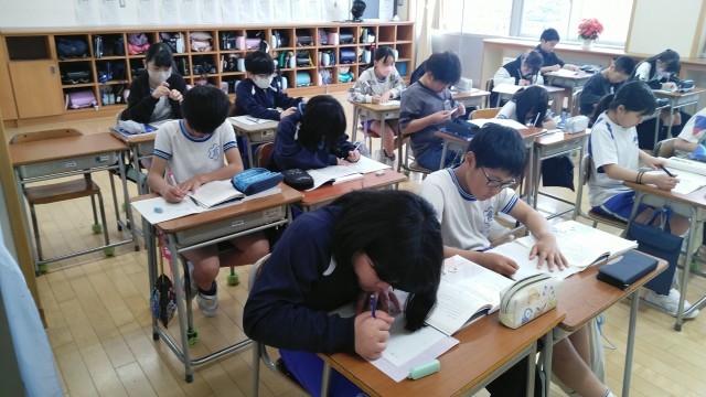 5年1組の1時間目は、国語科の学習でした。「銀色の裏地」というお話の登場人物について考えていました。