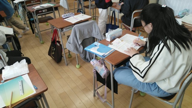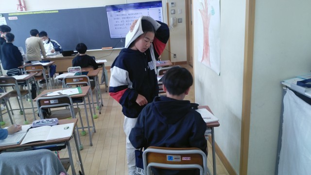 6年生の3時間目は、算数科の学習でした。線対称の図形に関する問題を解いていました。