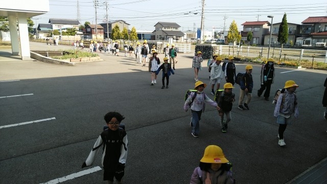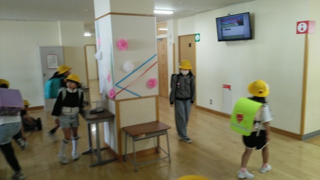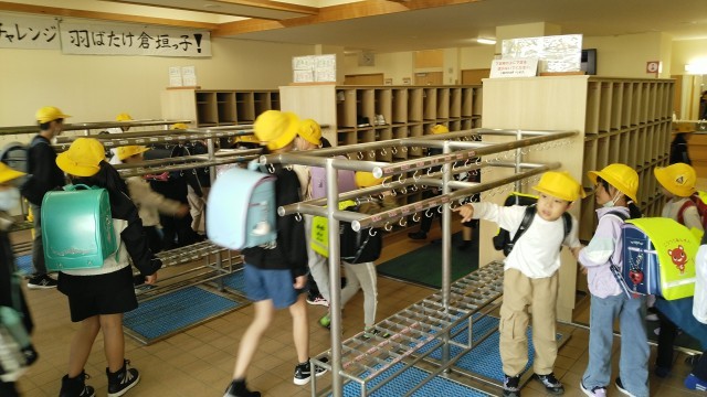 今朝の児童玄関の様子です。晴れの日です。子供たちが元気に登校してきました。