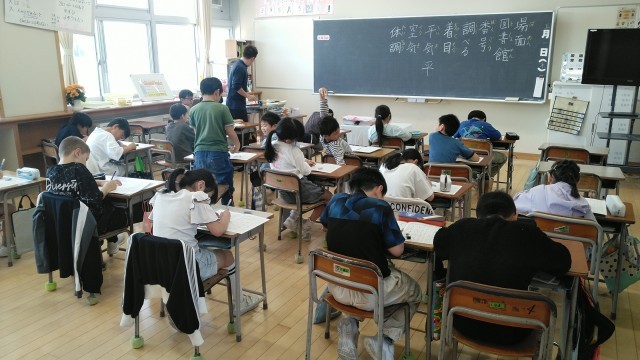 3年生の3時間目は、国語科の学習でした。場面、図書館、番号、調べる、着目、平気、空気、体調という漢字の練習をしていました。
