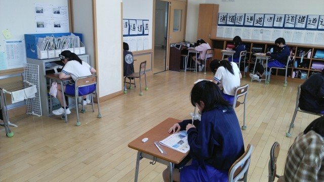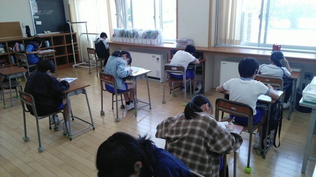 5年2組の3時間目は、理科の学習でした。「天気の変化」のテストをしていました。