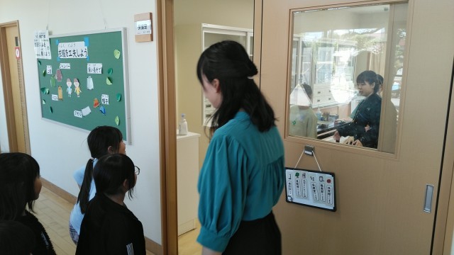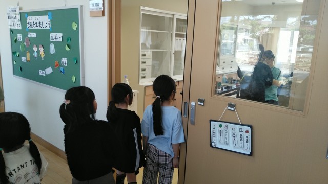 2年生の5時間目は、耳鼻科検診の時間でした。名前を言って診てもらっていました。