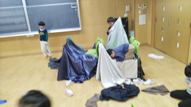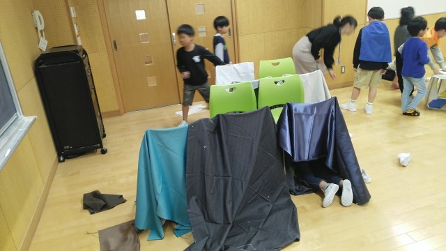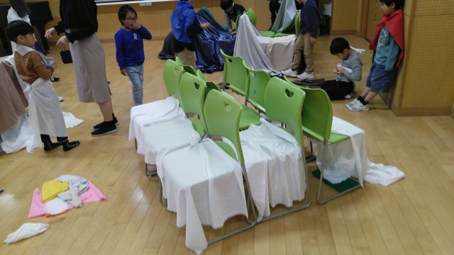2年生の3時間目は、図画工作科の学習でした。布を使った造形遊びを楽しんでいました。