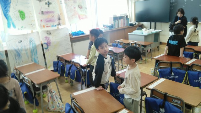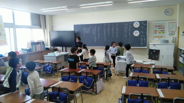 1年生の1時間目は、国語科の学習でした。「ゴールデンウィークのこと」を友達と話していました。