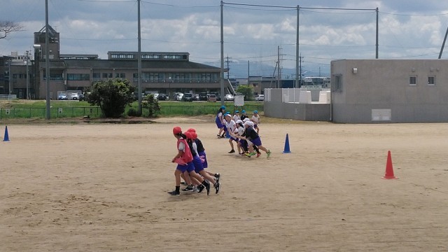 今年の運動会のメイン競技の「ファミリー班による台風の目」の練習をひいらぎタイムに行いました。