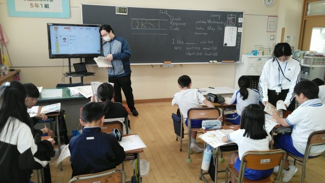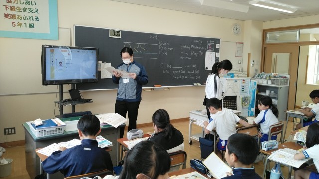 5年1組の5時間目は、外国語科の学習でした。好きな○○について英語で考えていました。
