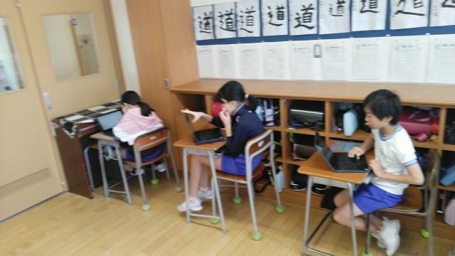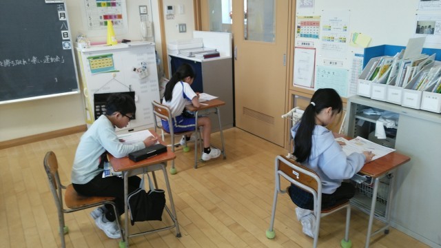 5年2組の2時間目は、算数科の学習でした。テストをしていました。